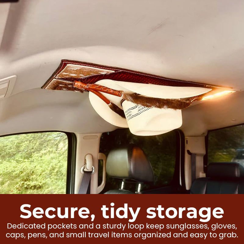 Tired of sunglasses sliding under the seat, hats getting crushed, or clutter crowding your visor? Meet the Western Leather Visor Organizer — a handsome, durable solution that keeps your everyday driving essentials within easy reach while adding classic cowboy flair to your ride.