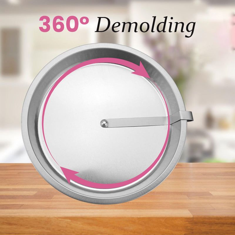 🔸 Snabbkopplingsdesign – Ett slätt, inbyggt blad lyfter din kaka jämnt från botten. Inga skakningar, inga skador.