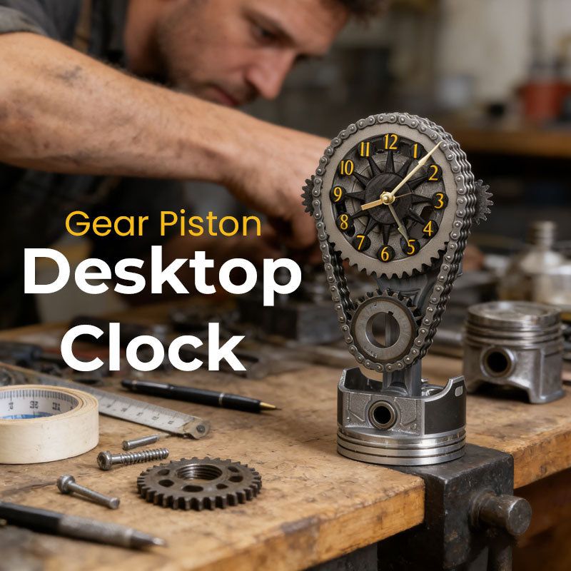 ⚙️Tischuhr mit Zahnrad- und Kolbenmechanismus: Industrieller Stil, mechanischer Charme! ⏰